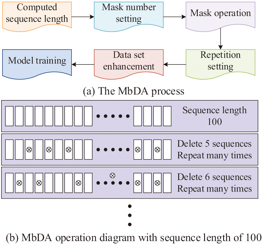 As shown in Fig. 1(a), MbDA is mainly divided into six steps. First, it calculates the sequence length of paper drone flight data. For example, in the 7Sense dataset containing image sequences for drone pose estimation and motion control research, a single sequence may contain 1000 consecutive flight state data. Then it determines the number of Masks, which is the number of frames to be masked in the sequence. When the sequence length is greater than 100, research suggests that the number of masks should be between 5 and 50. After determining the quantity, it is necessary to perform a Mask operation and randomly select frame sequences and delete them. To ensure the diversity of data augmentation operations, after the first deletion, it is necessary to perform duplicate deletion and set the number of masks before repeating deletion, and each deletion operation randomly selects a frame sequence. After generating multiple subsequences with different velocity characteristics, data augmentation of the dataset is completed, and finally VbPET can be used for training to improve its generalization performance.