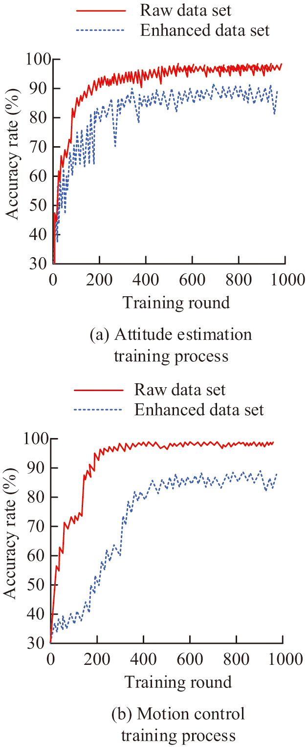 From Fig. 7(a), for pose estimation, the estimation accuracy for the original dataset was around 90.00% after 1000 training sessions, while the highest estimation accuracy reached 96.31% after using data augmentation methods. As shown in Fig. 7(b), when performing motion control, the accuracy of motion control trained on the dataset using data augmentation methods was also better than the original dataset, with the former reaching 97.81% and the latter only 88.34%. From this, the MbDA method and sliding window method proposed in the study could effectively improve accuracy during the training process. After training, to verify the generalization performance improvement effect of the data augmentation method, the EuRoC MAV dataset, AirSim dataset, and Malaga dataset were selected as the test sets for a total of 100 tests. The results are shown in Fig. 8.