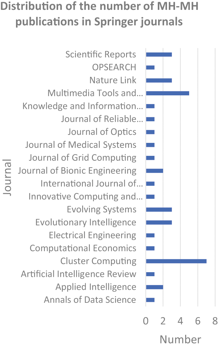 Fig. 13. Distribution of the number of MH-MH publications in Springer journals