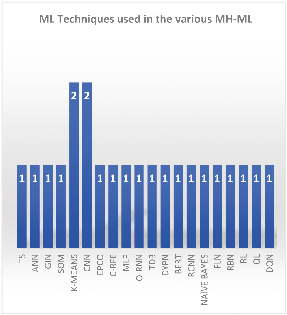 Fig. 14. ML techniques used in the various MH-ML.