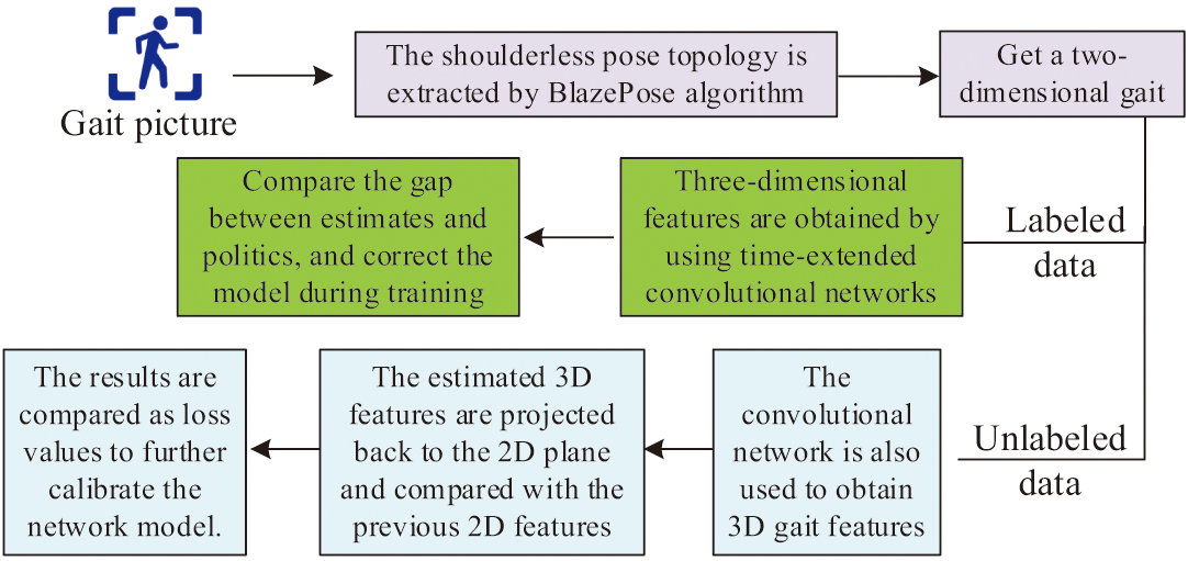 In Fig. 2, the research utilizes the designed expanded convolutional network to achieve the transformation from two-dimensional features to three-dimensional features. To improve the model’s accuracy further, the research divides the two-dimensional features into two categories during training: labeled and unlabeled data. For labeled data, the supervised learning method is used for training. For unlabeled data, feature extraction is carried out through self-supervised learning. The conventional dilation convolution will have some information loss; for this, the study sets the dilation convolution as a multi-scale structure [20,21].