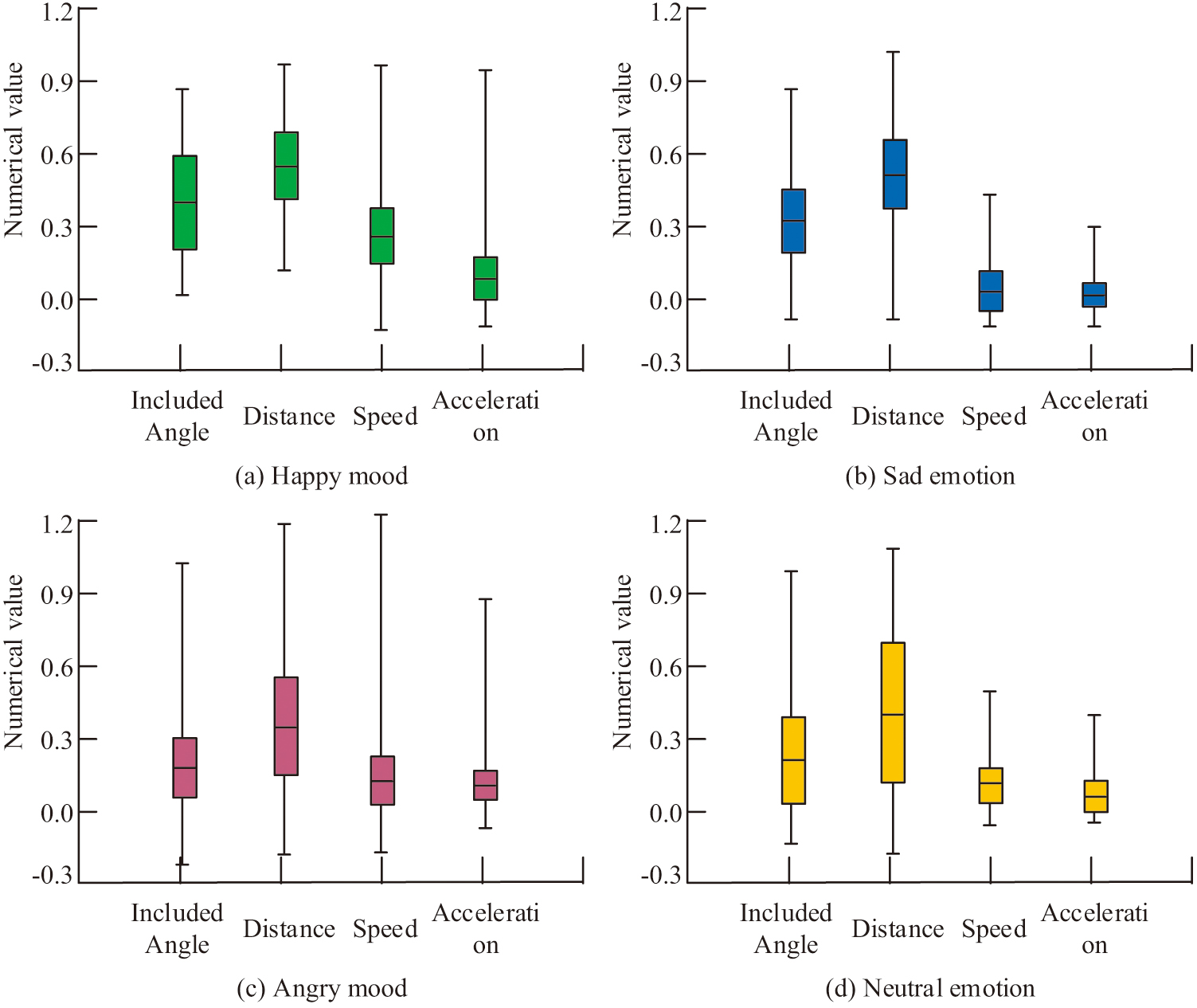 Fig. 6. Data distribution of various characteristics under four emotions.
