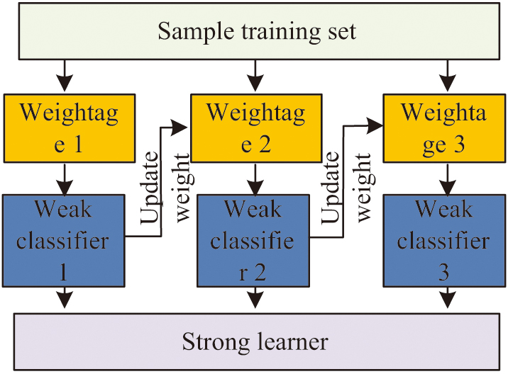 In Fig. 7, the study calculates the weights of three weak classifiers based on their classification errors. The specific calculation method is shown in Equation (7):