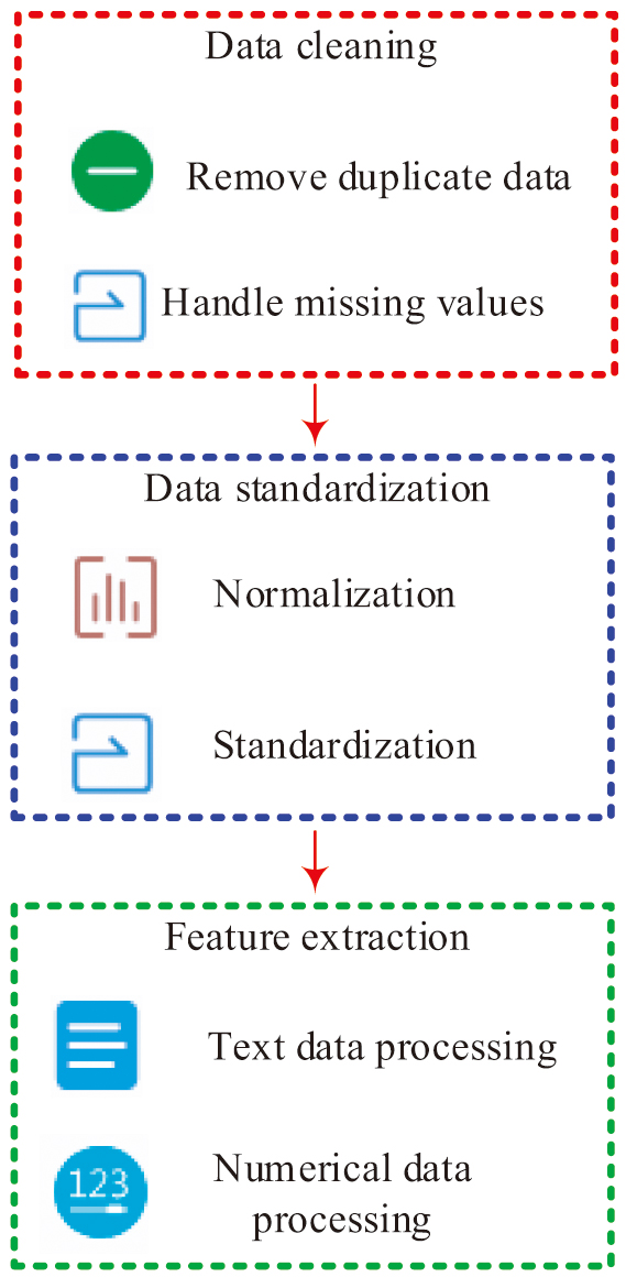 In Fig. 3, first, during the data cleaning process, it is necessary to check duplicate records and delete them if they are duplicated. For missing data, an appropriate filling method is selected based on the nature of the data. In this study, the mean filling method is used, which means filling the missing values with the mean of the data in the same column. The relevant mathematical expression is shown in formula (1):