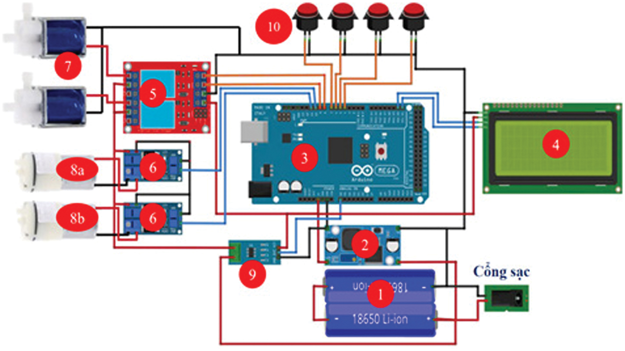The electrical circuit was independently researched and developed by the authors by purchasing individual components for design and fabrication. It consists of the following devices, as illustrated in Fig. 3 and Fig. 4: