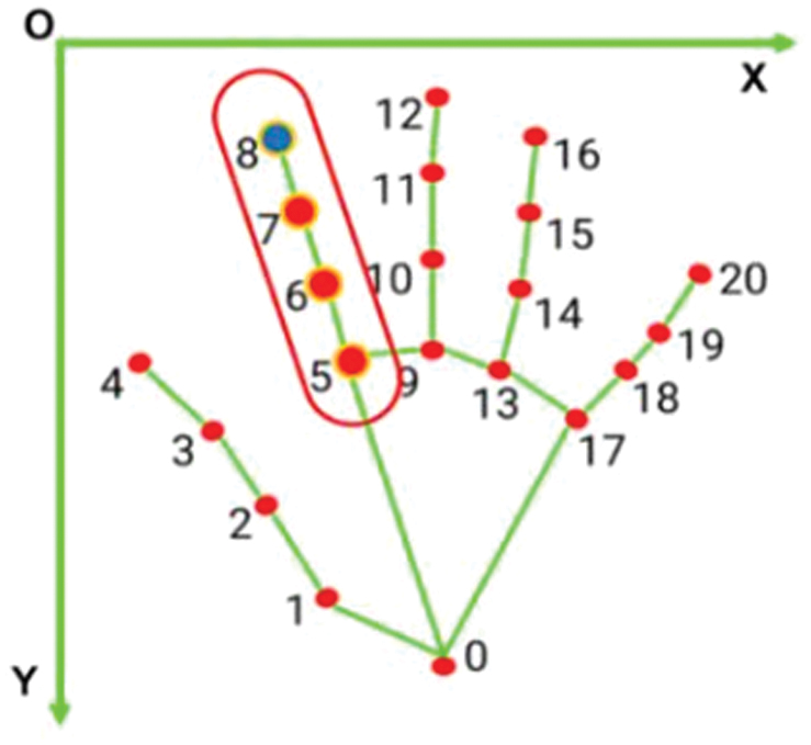 The landmark points on the fingers are illustrated in Fig. 7. The input image processing consists of the following stages: (1) image rotation, (2) image resizing, and (3) normalization and color space conversion. Subsequently, a thresholding technique is applied to filter the predicted output results.