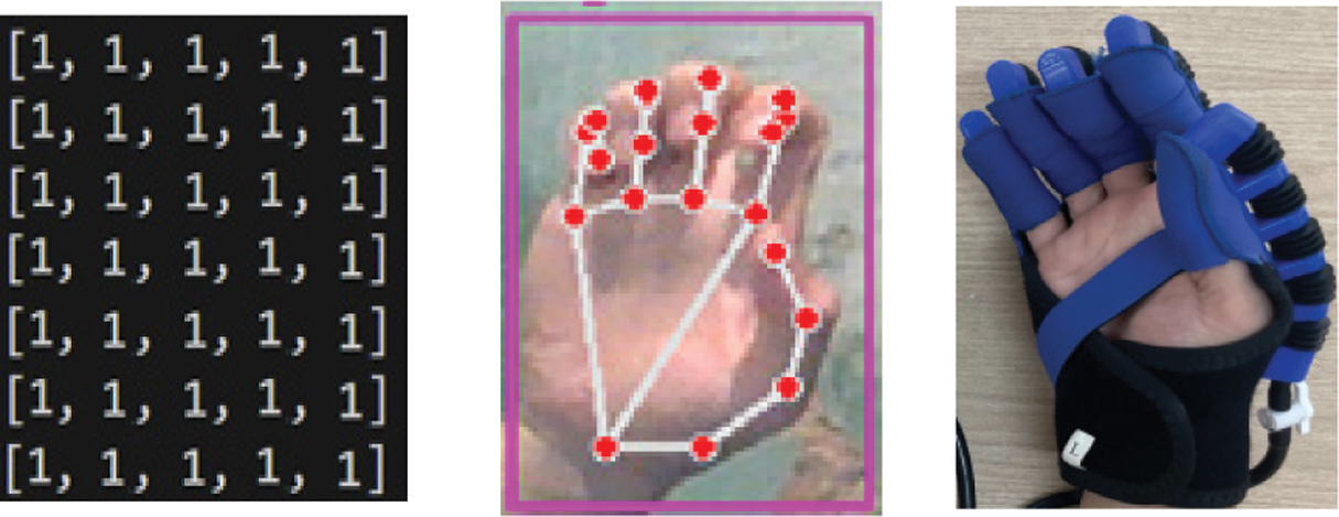 When the recognition result of the intact hand is at level 1, a one-dimensional array of [1,1,1,1,1] is generated and transmitted to the computer via UART. Consequently, all the paralyzed fingers will flex at level 1, as shown in Fig. 12.