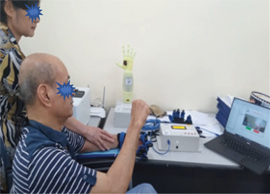 The results of the finger flexion/extension levels have been provided in the form of a one-dimensional array with parameters matching the preset configurations. This image recognition result meets the specified requirements for rehabilitation exercises, ensuring proper flexion and extension of the paralyzed hand, as shown in Fig. 15. The patient is highly satisfied with the group’s product model.