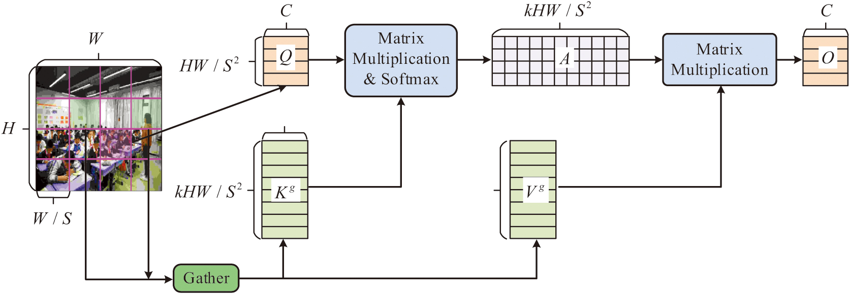 The key and value tensor for each region are gathered in accordance with , as displayed in Equation (4):