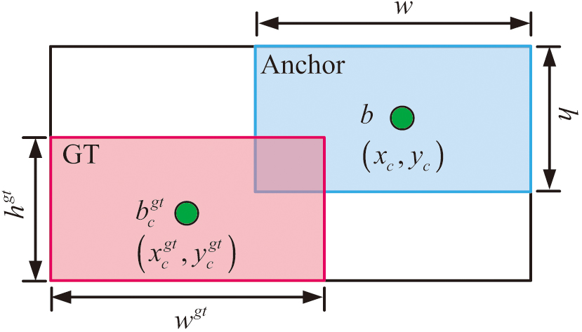 In Fig. 4, and are the center points (CPs) of the ground truth (GT) frame and the anchor frame, respectively. , , , and display the width and height of the GT frame and the anchor frame, respectively. The regression LF can be expressed by Equation (6):