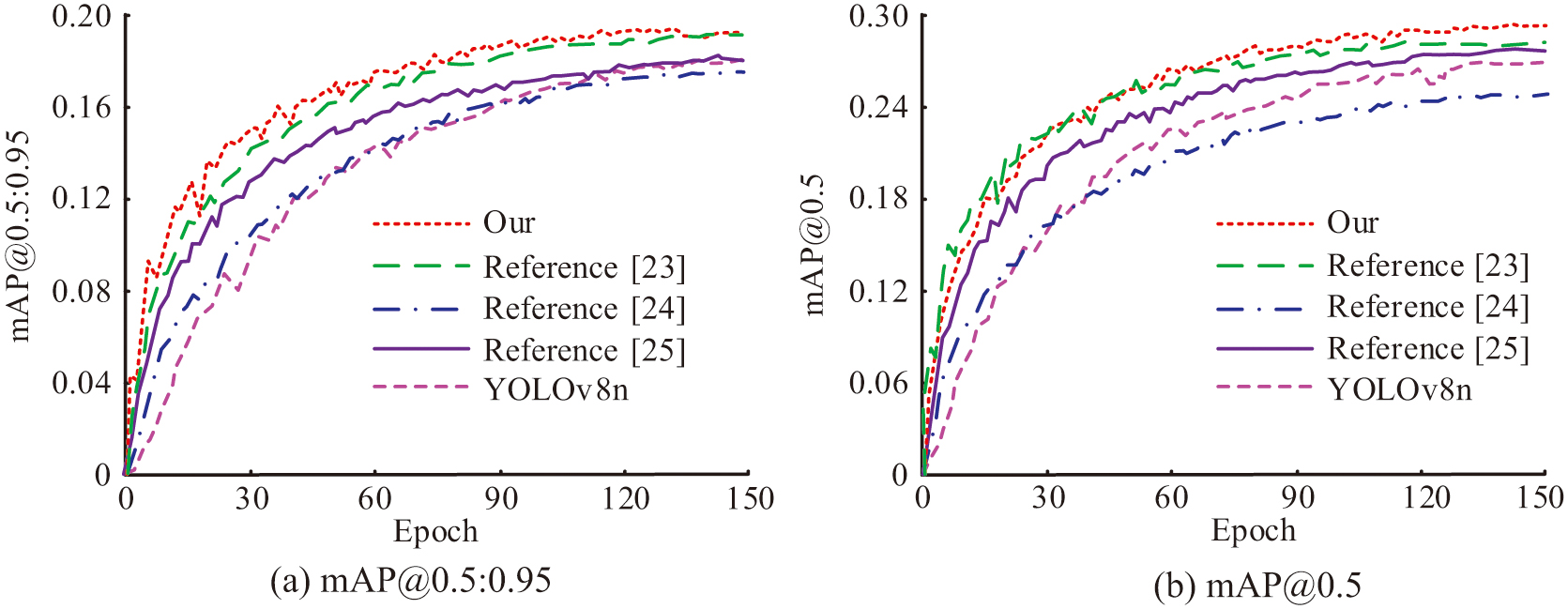 All the baseline models involved in the comparison are retrained on the aforementioned self-made classroom dataset. This includes the classic YOLO family models and the improved algorithms proposed in [23–25]. During the retraining process, all models adopt the same experimental environment configuration and hyperparameter settings, as shown in Table I. This consistent training setup ensures uniform data distribution and optimization conditions for all comparison models, eliminating performance biases caused by differences in training datasets or parameter configurations.