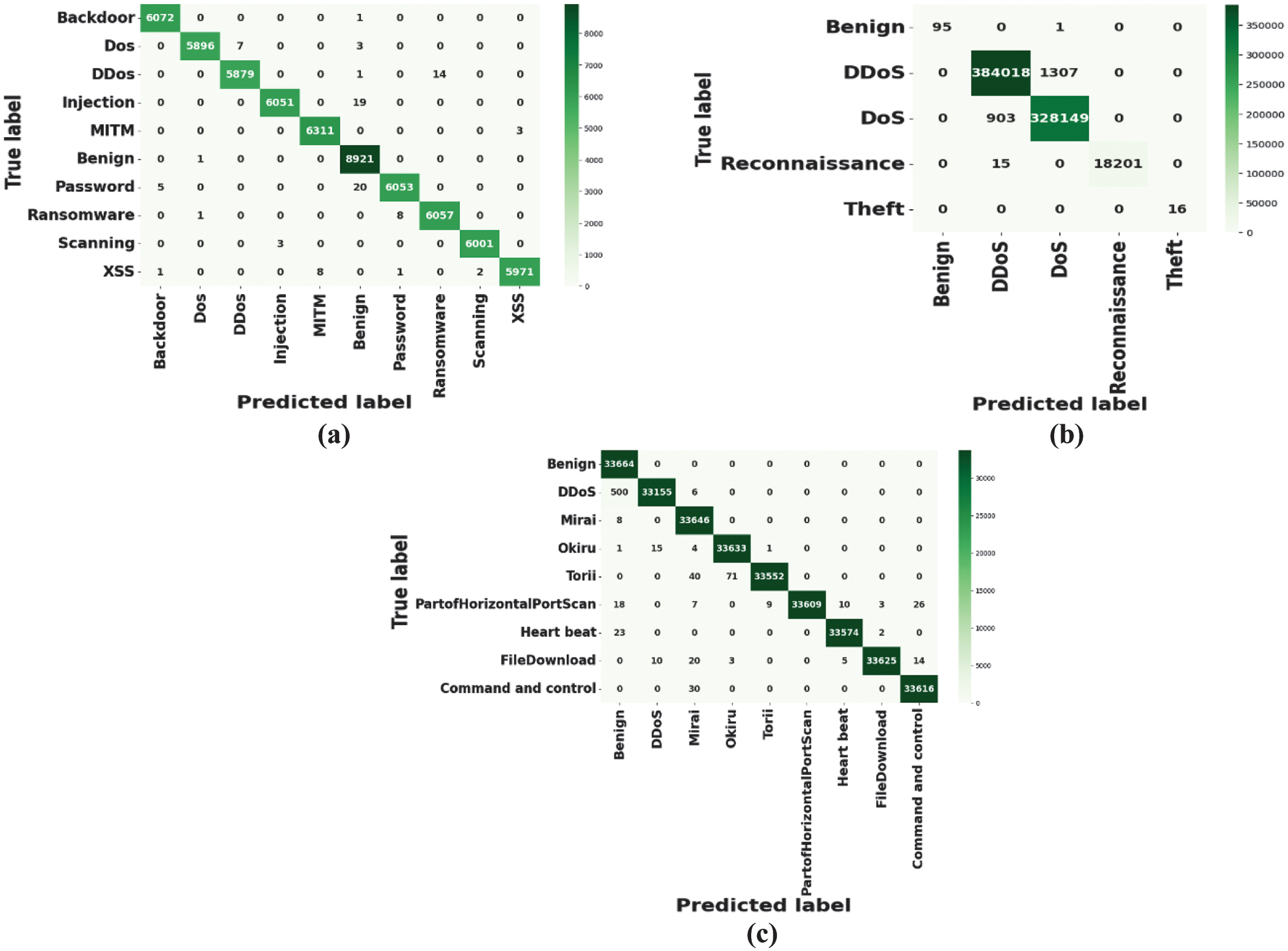 Fig. 6. ROC curve for the classifier on (a) ToN-IoT (b) BoT-IoT, and (c) IoT-23 datasets.