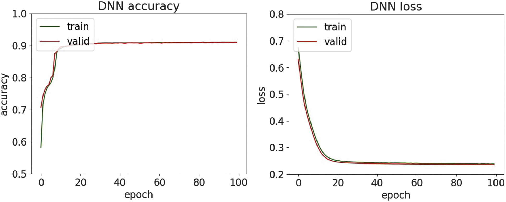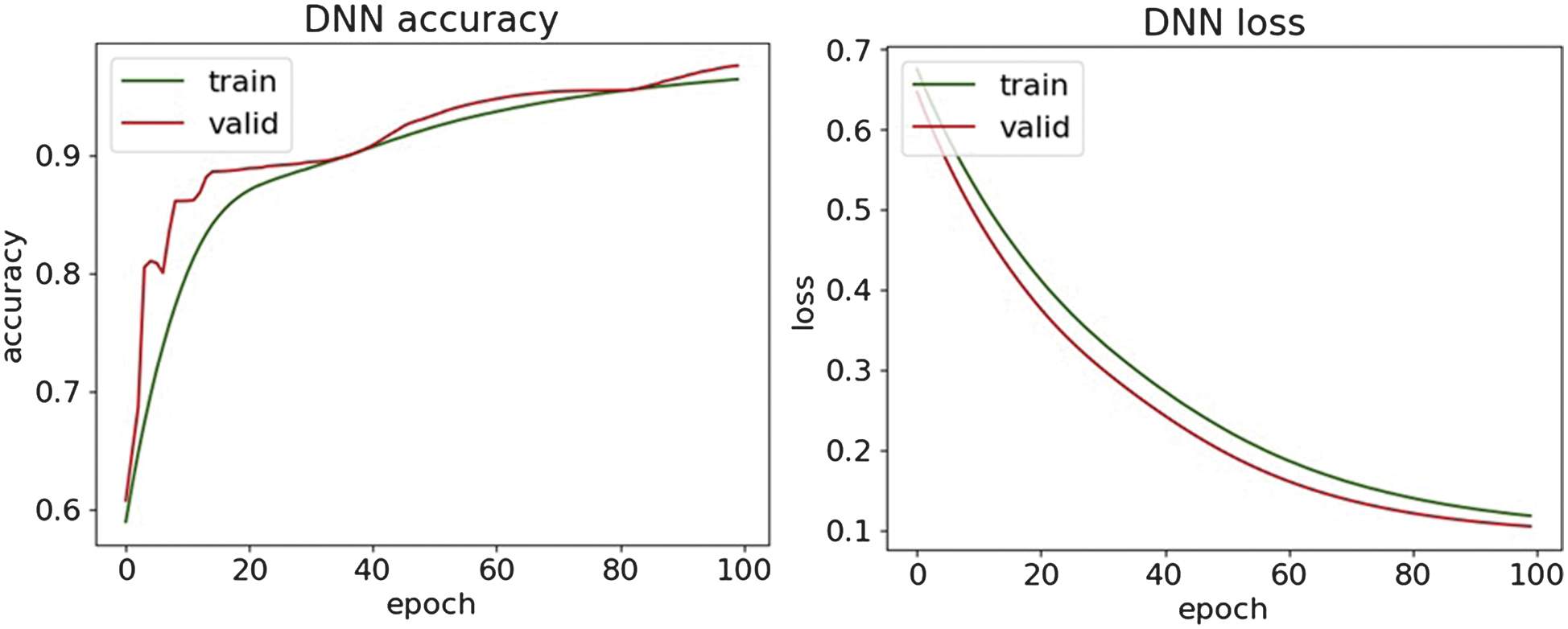 Fig. 18. The accuracy and loss plots of DNN.