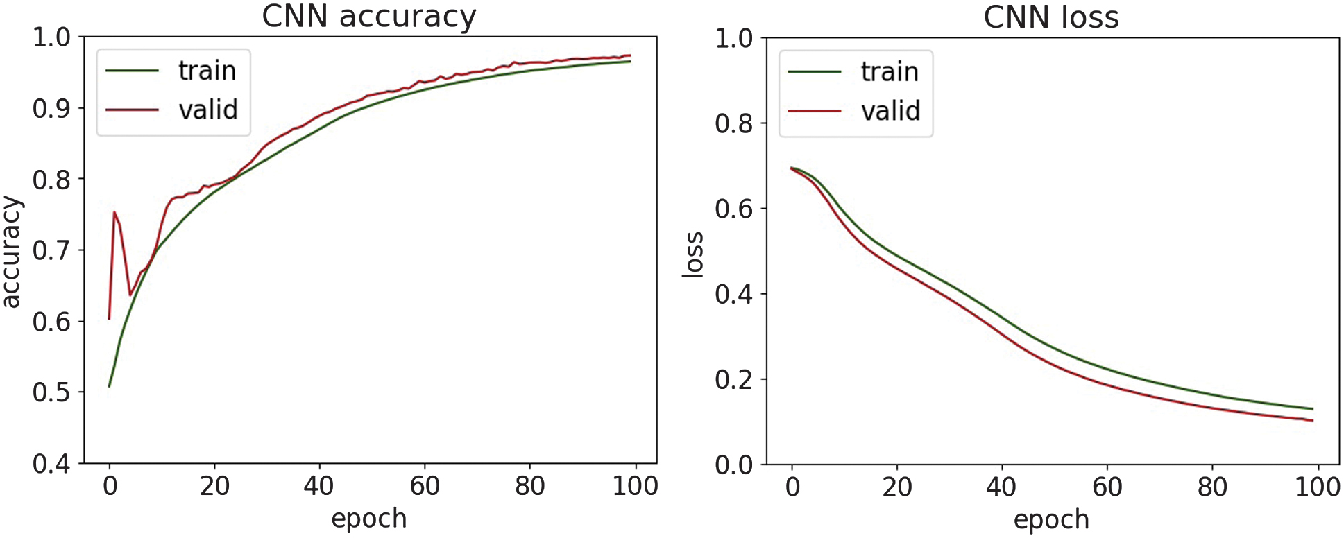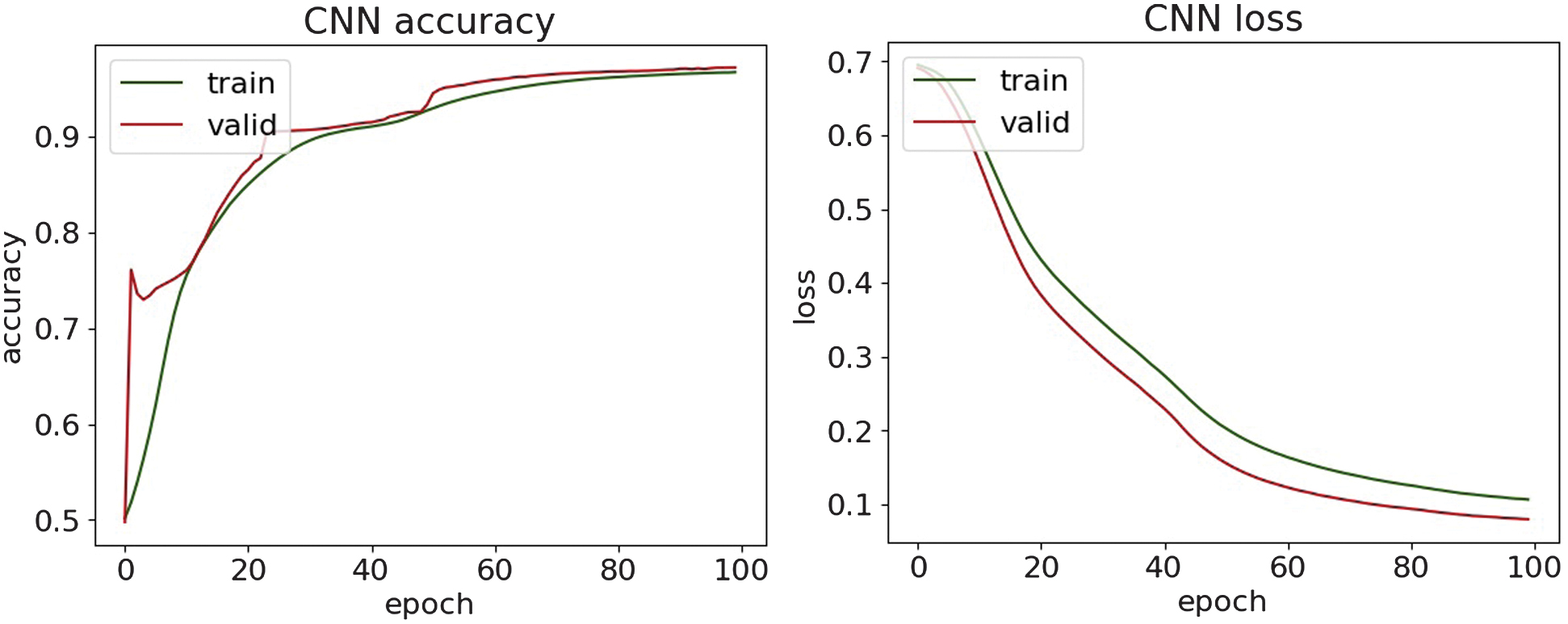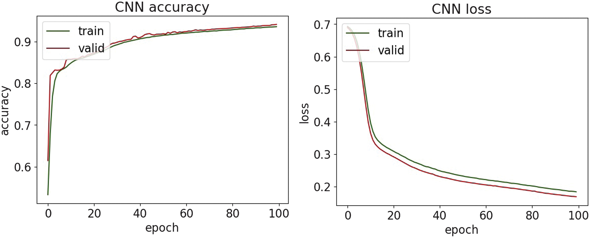 Fig. 14. The accuracy and loss plots of CNN.