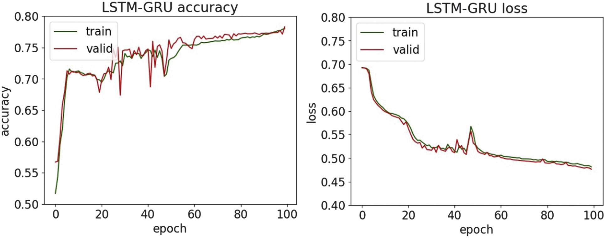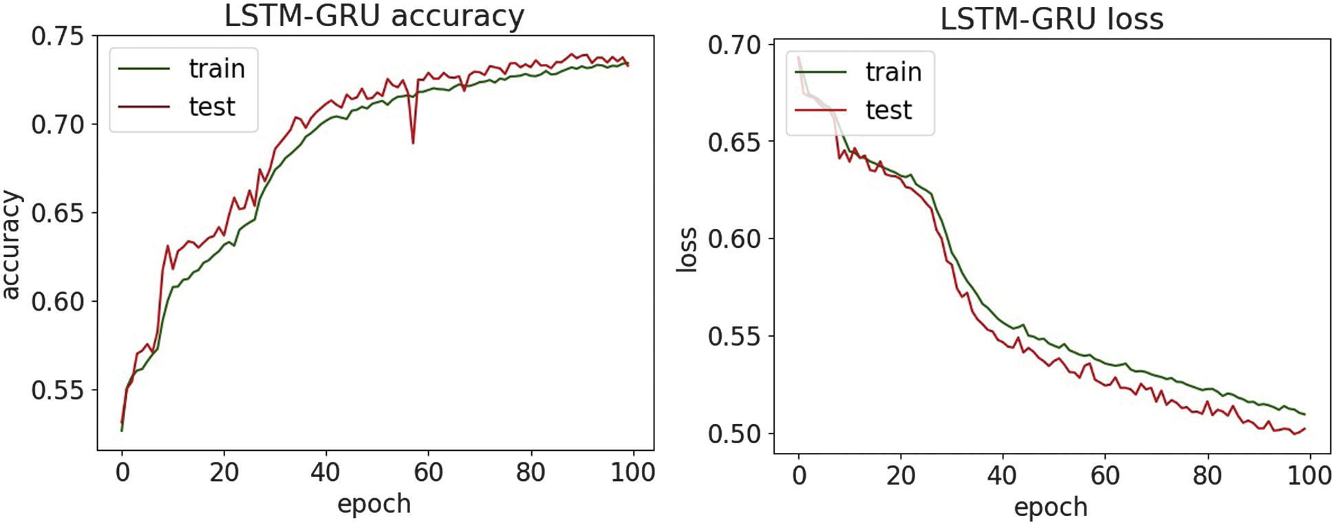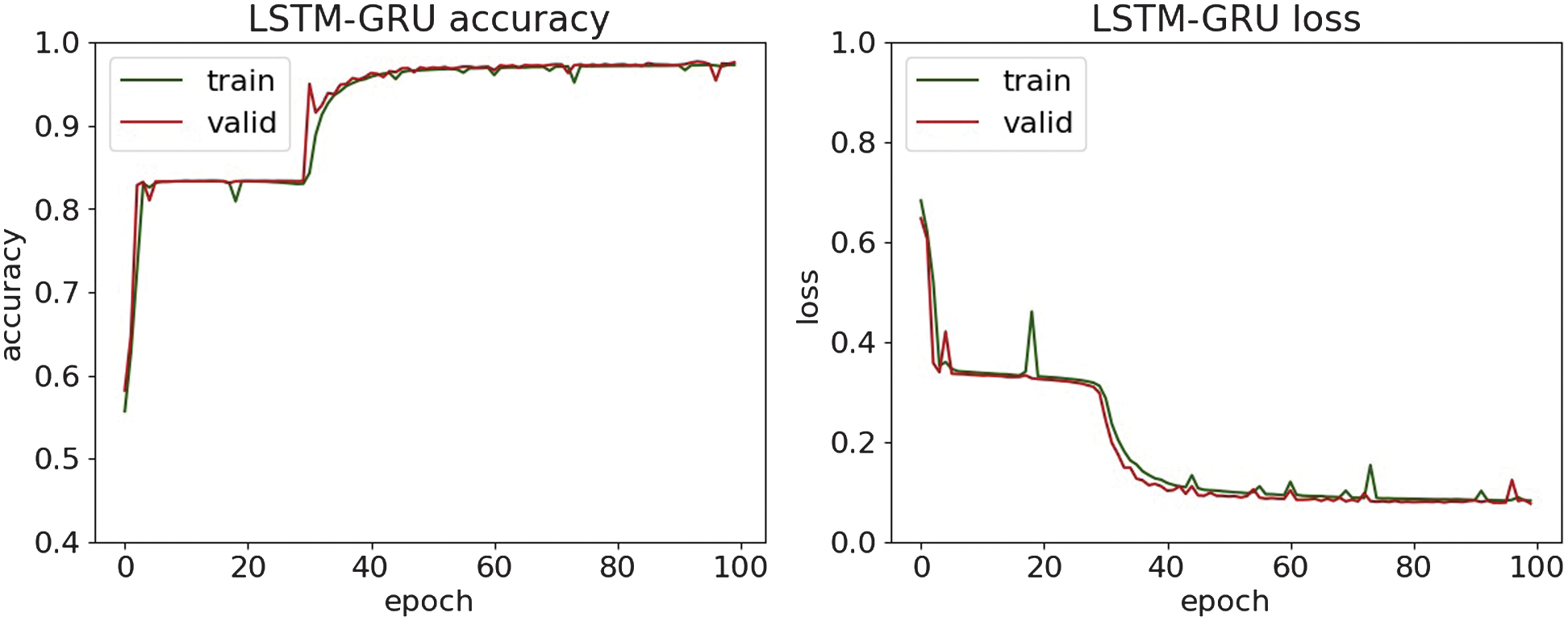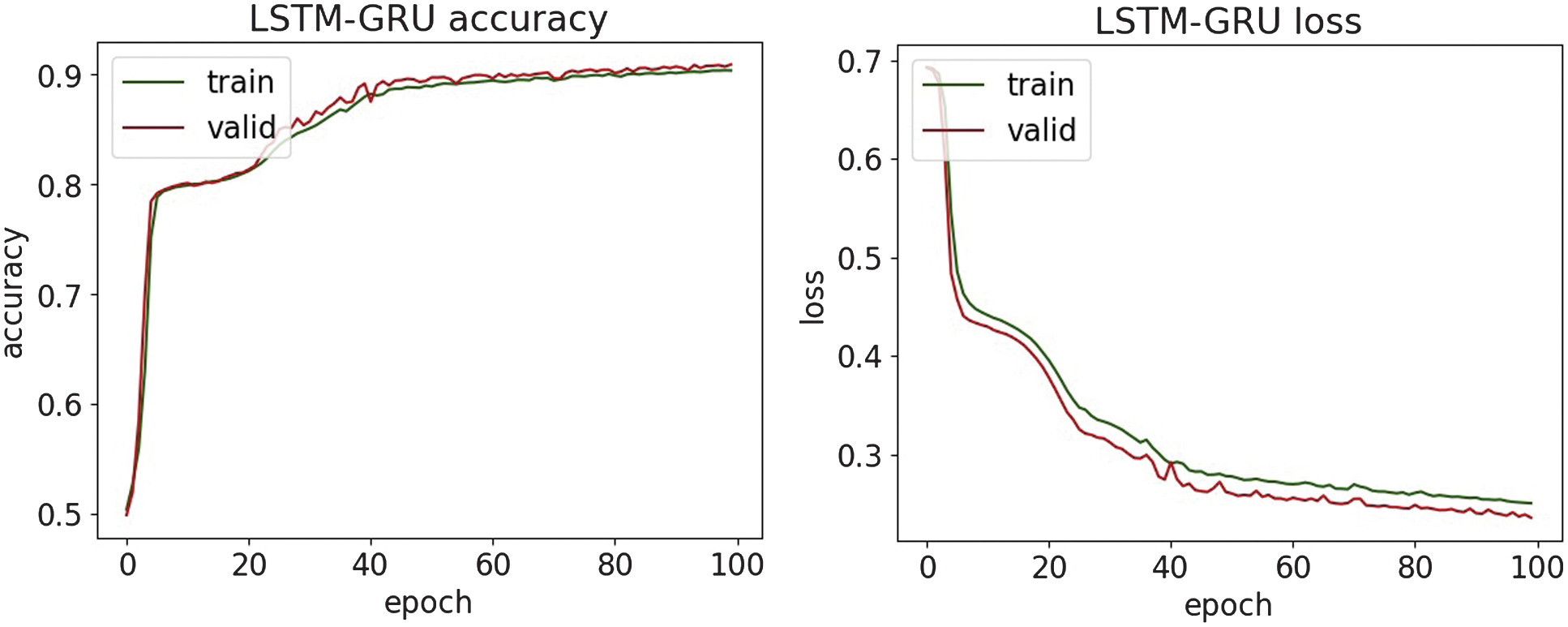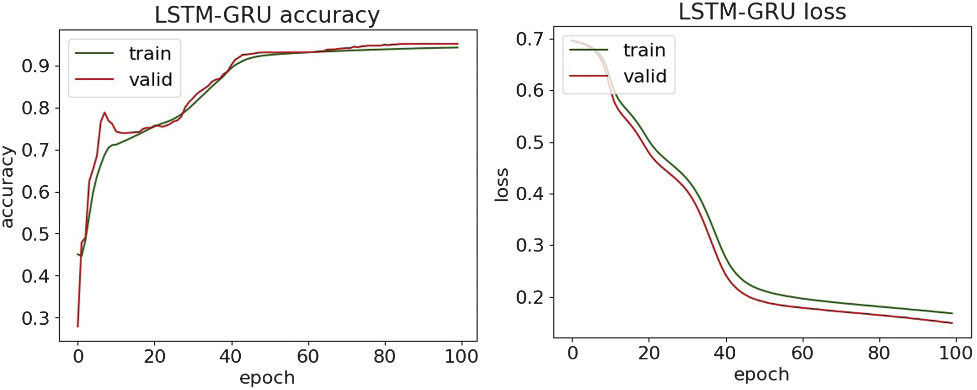 Fig. 16. The accuracy and loss plots of LSTM-GRU.