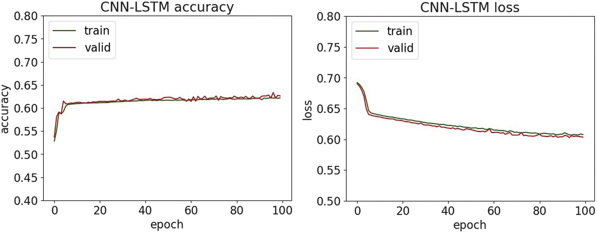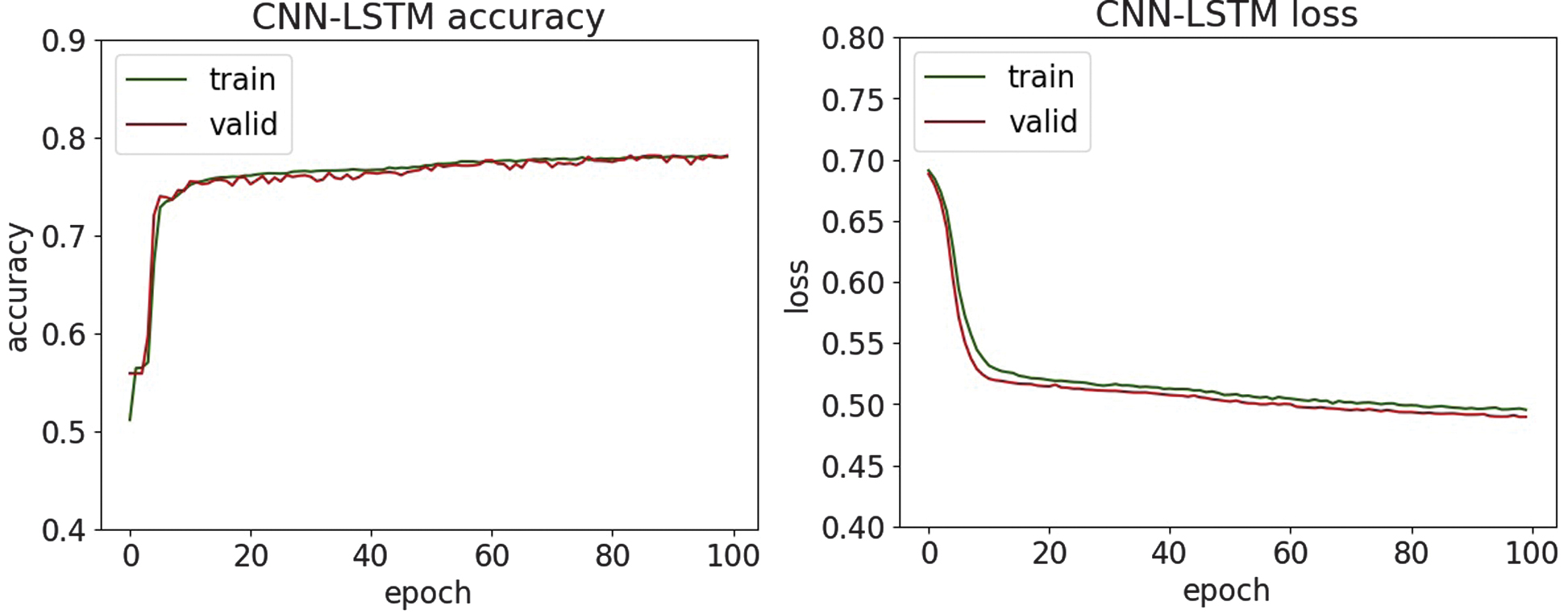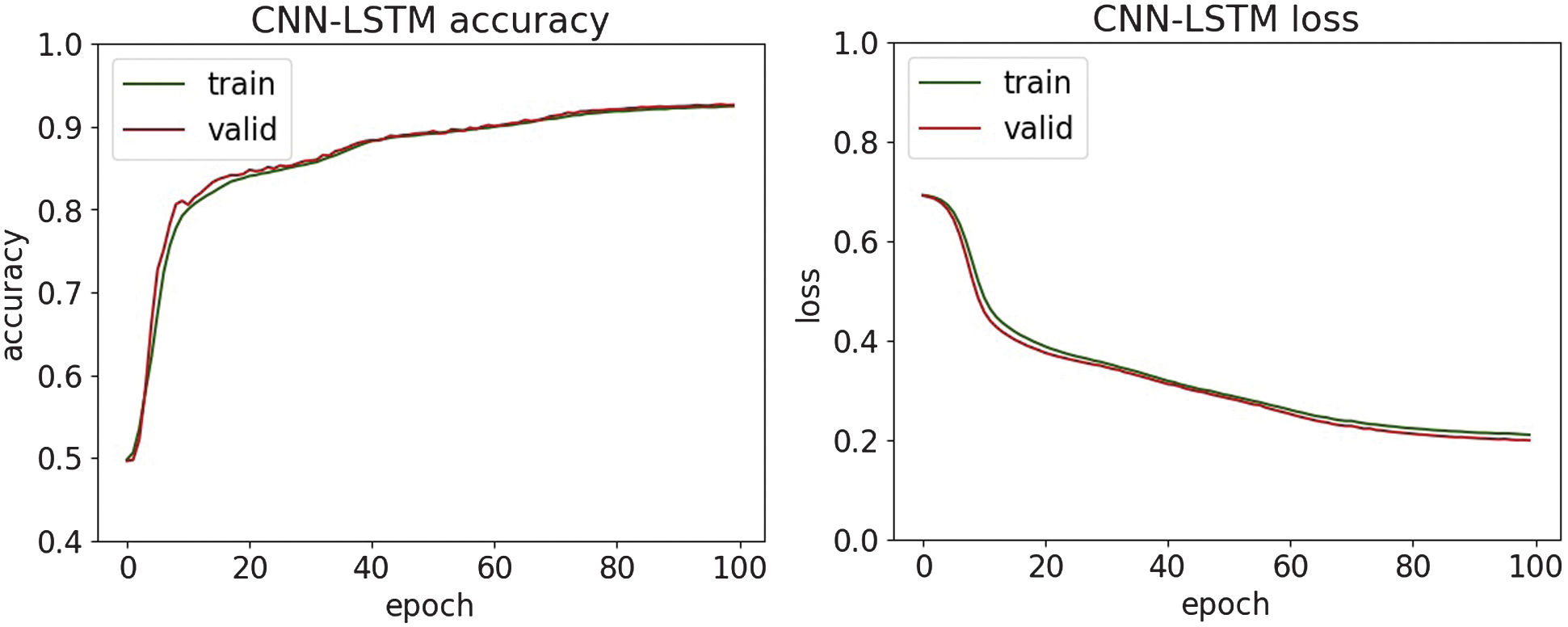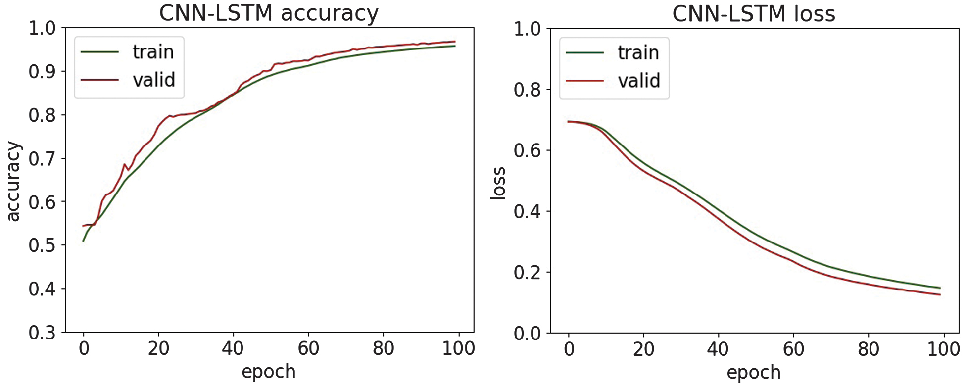 Fig. 15. The accuracy and loss plots of CNN-LSTM.