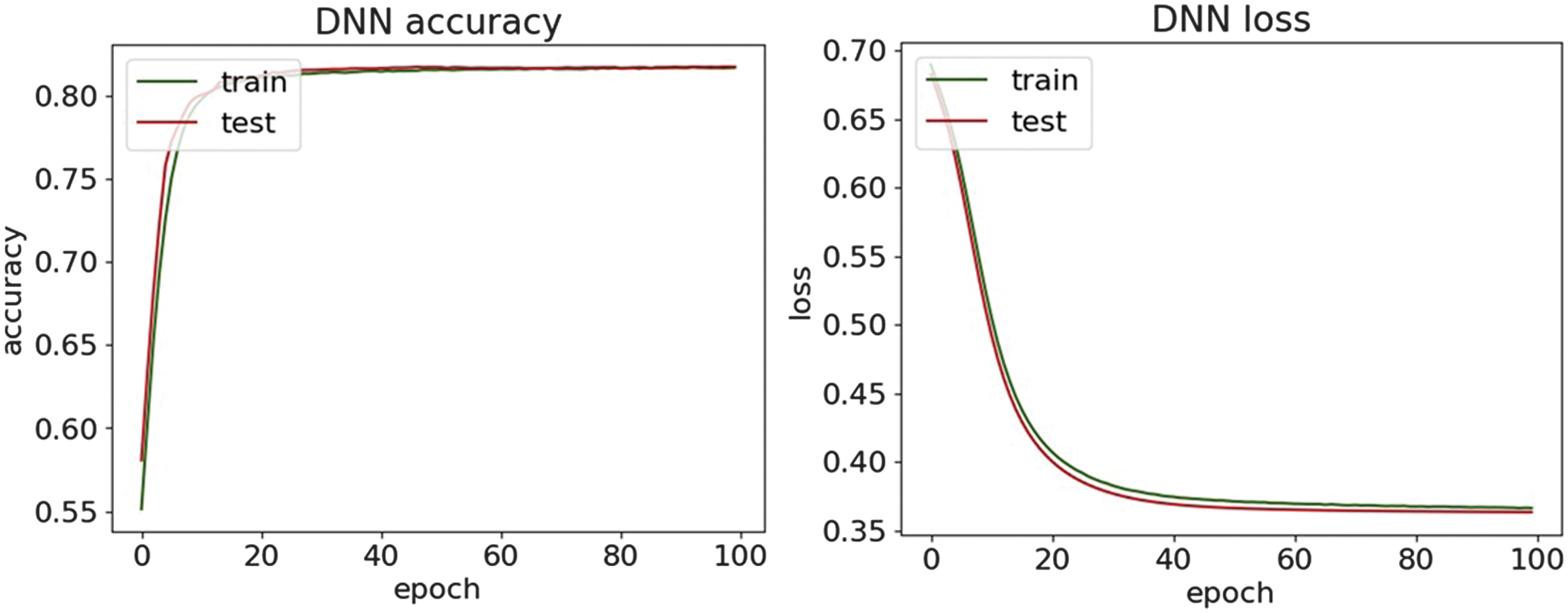 Fig. 13. The accuracy and loss plots of DNN.