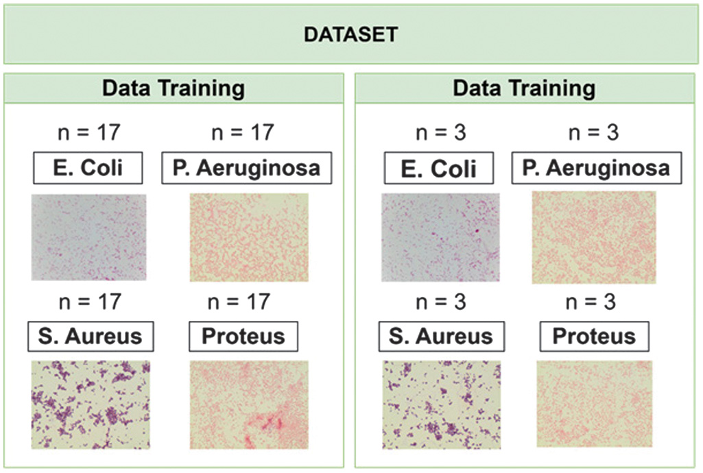 In this study, the dataset utilized consists of four types of waterborne bacteria, namely E. coli, P. aeruginosa, S. aureus, and Proteus species. These bacteria are observed and analyzed through microscopic imaging after being subjected to the Gram staining technique, which is a fundamental method in microbiology for classifying bacterial species. The image data of E. coli are obtained directly through microscopic observation conducted at the Microbiology Laboratory of the Samudra University during practical laboratory work utilizing the Gram staining technique. Meanwhile, the image data for the other three bacterial species, P. aeruginosa, S. aureus, and Proteus species, are collected from the Digital Image of Bacterial Species (DIBaS) open-access database to ensure the availability of high-quality and verified microscopic bacterial images.