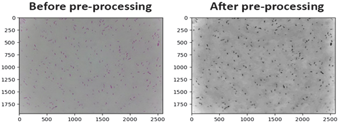 Fig. 5. Comparison of E. coli images before and after preprocessing.