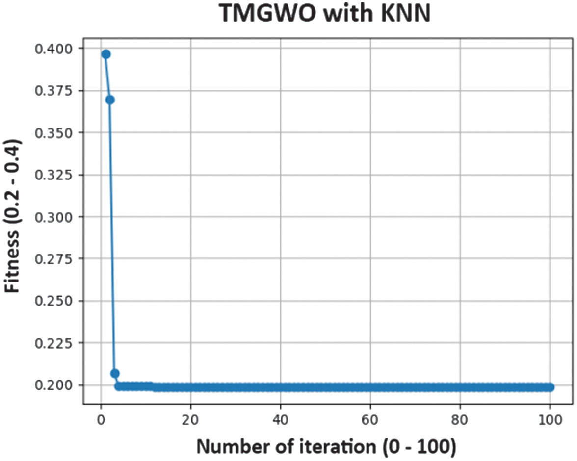 Fig. 9. Fitness convergence plot on feature selection by TMGWO.