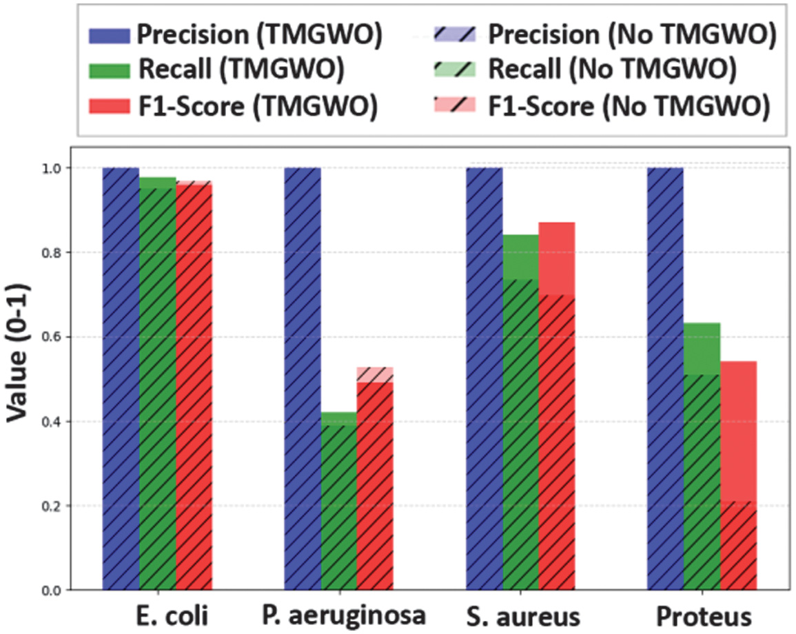 For future work, it is recommended to expand the dataset with more diverse and larger image samples, including different bacterial strains and various imaging conditions. Moreover, the integration of advanced classification algorithms, such as DL-based approaches, could further enhance accuracy. Combining TMGWO with hybrid or ensemble feature selection methods might also yield more robust and generalizable results.