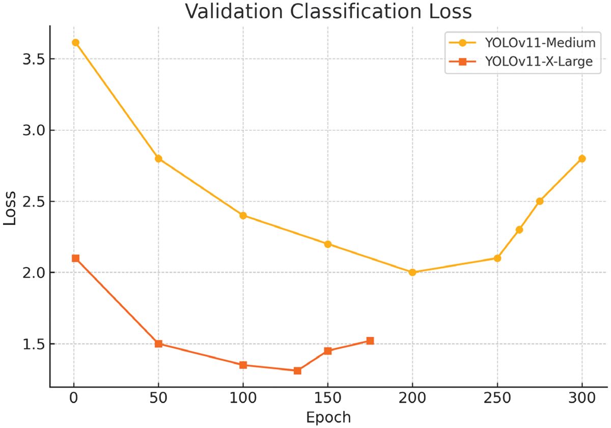 Fig. 22. Validation classification loss metric for YOLOv11m/x-large.