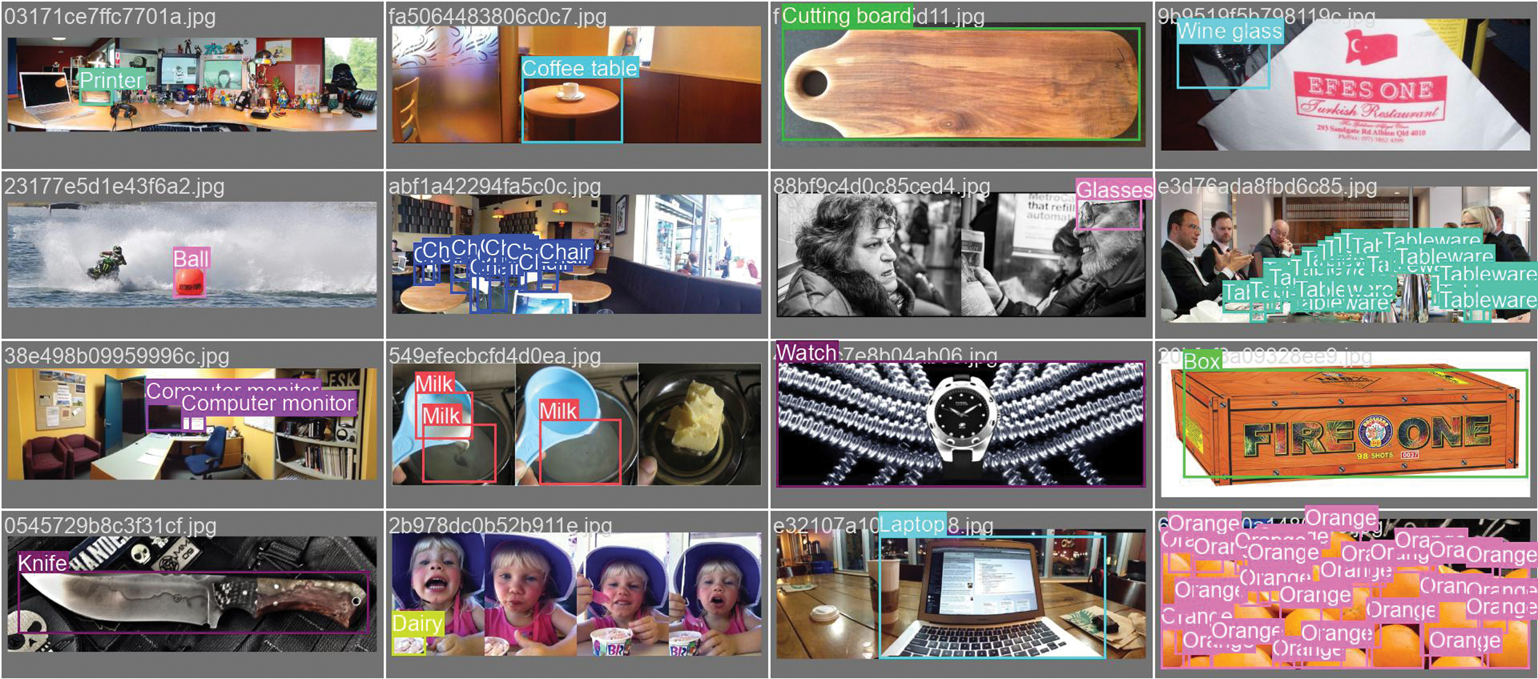 Fig. 17. Validation Batch Labels for YOLOv11-m variant. Source images are from the Google Open Images dataset, which shows actual annotations for images.