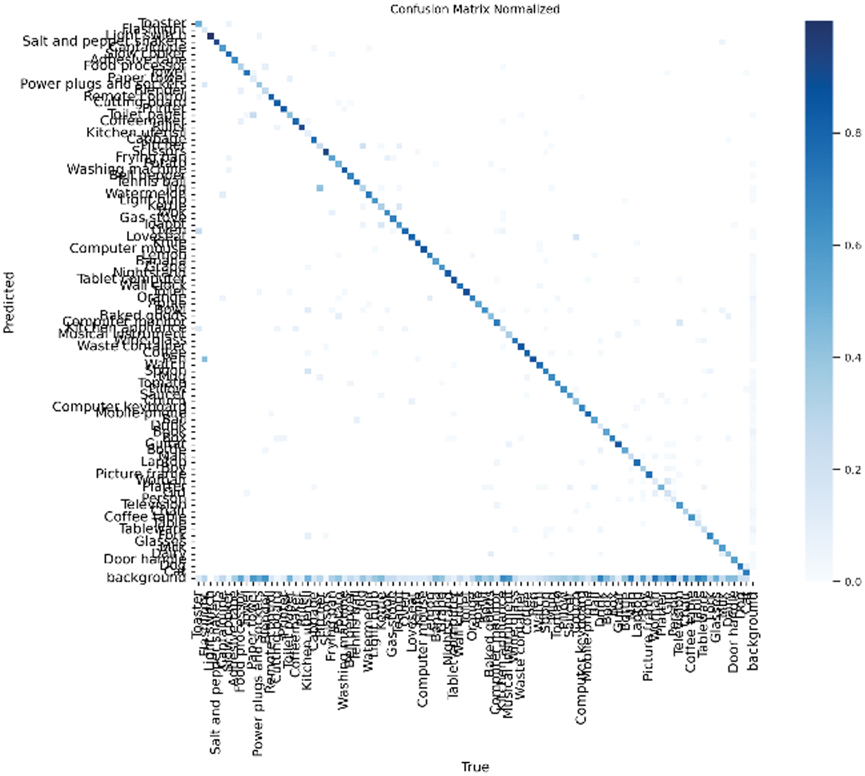 To further understand detection behavior and category-level performance, confusion matrices [26] were generated for both the YOLOv11 Medium and X-Large models. These matrices visualize class-level predictions and misclassifications, providing insights into how frequently objects were correctly identified versus misclassified or missed entirely.