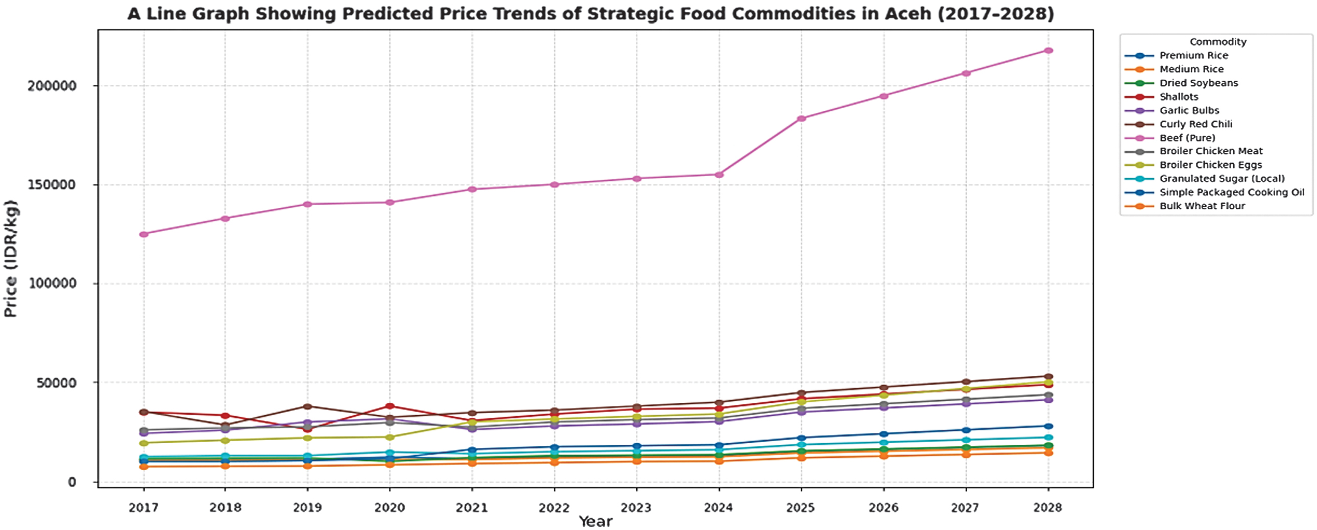 Food security has long been recognized as one of the most critical global challenges, closely linked to the achievement of the United Nations Sustainable Development Goals (SDGs) [1]. Ensuring consistent access to affordable, safe, and nutritious food is fundamental to human development, yet many regions continue to experience volatility in both supply and distribution [2]. Increasing socioeconomic pressures, climate variability, and disruptions in global trade have further undermined food system stability, creating a demand for innovative approaches in prediction, monitoring, and management. Within this context, artificial intelligence (AI) and machine learning (ML) are increasingly applied to address such complexities through predictive analytics and data-driven decision support [3]. Indonesia, with its diverse agricultural base, illustrates both the opportunities and vulnerabilities of food systems management [4]. Aceh Province, in particular, represents a critical case due to its reliance on staple commodities such as rice, starchy foods, and fish [5].