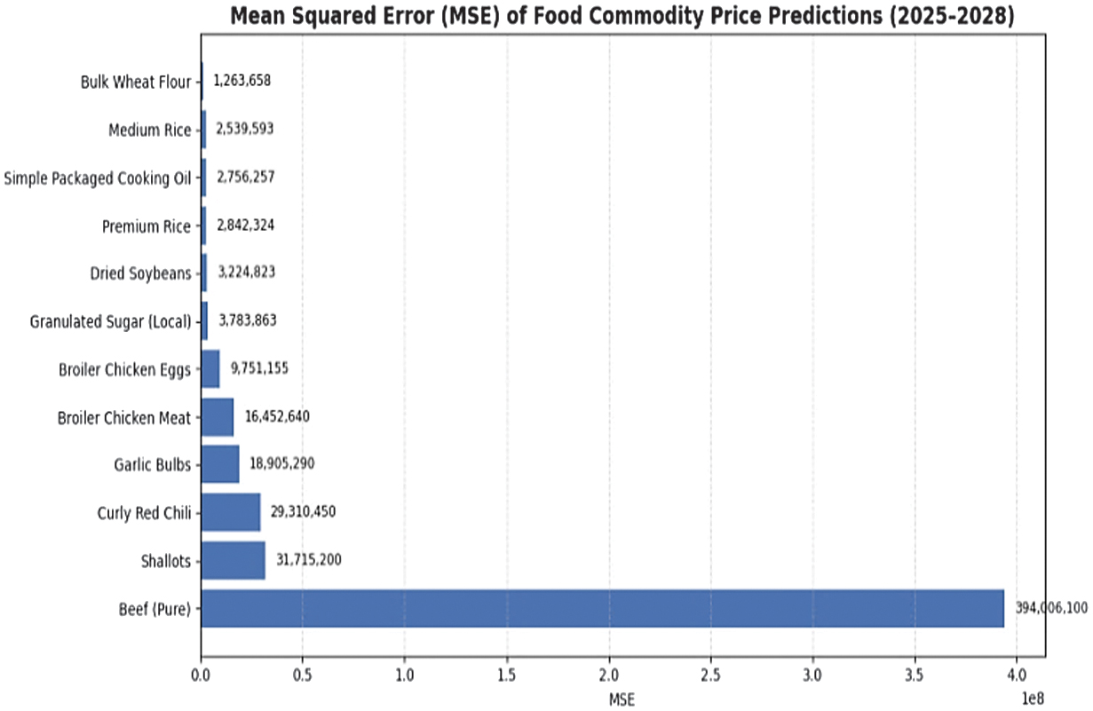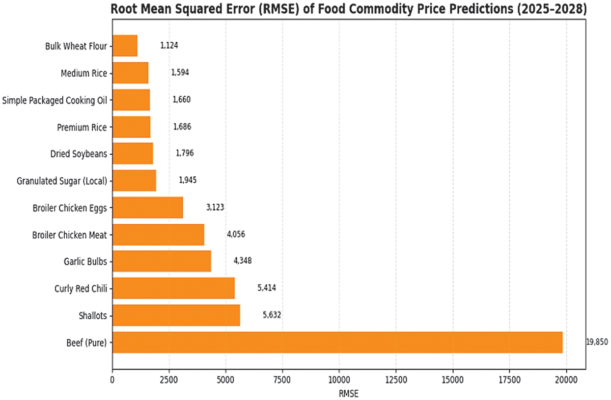 This study proposes a three-stage ML framework to enhance smart food systems management in Aceh, as illustrated in Fig. 1. The first stage focuses on commodity price forecasting using ridge regression, chosen for its ability to handle multicollinearity and provide stable predictions. Forecast accuracy is evaluated with mean squared error (MSE) and root mean squared error (RMSE) to ensure minimal prediction error.